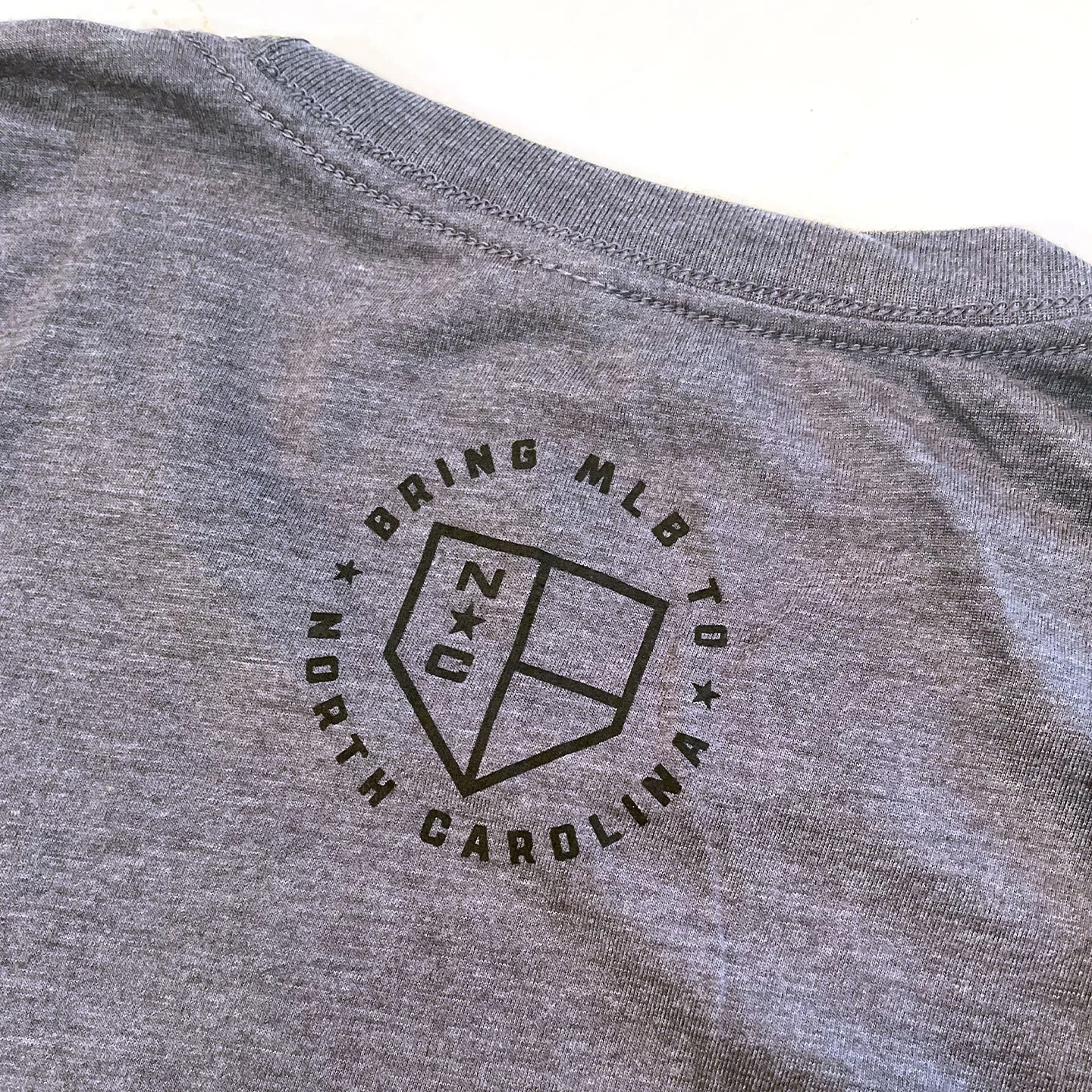 DESCRIPTIONWe are excited to release a clean NC monogram shirt on buttery smooth triblend. Water-based ink makes it even more of a vintage feel. Back has Bring MLB to NC stamp.